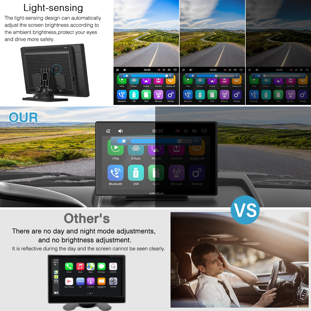 Light-sensing Design: Automatically adjust the screen brightness according to the ambient brightness,protect your eyes and drive more safely.