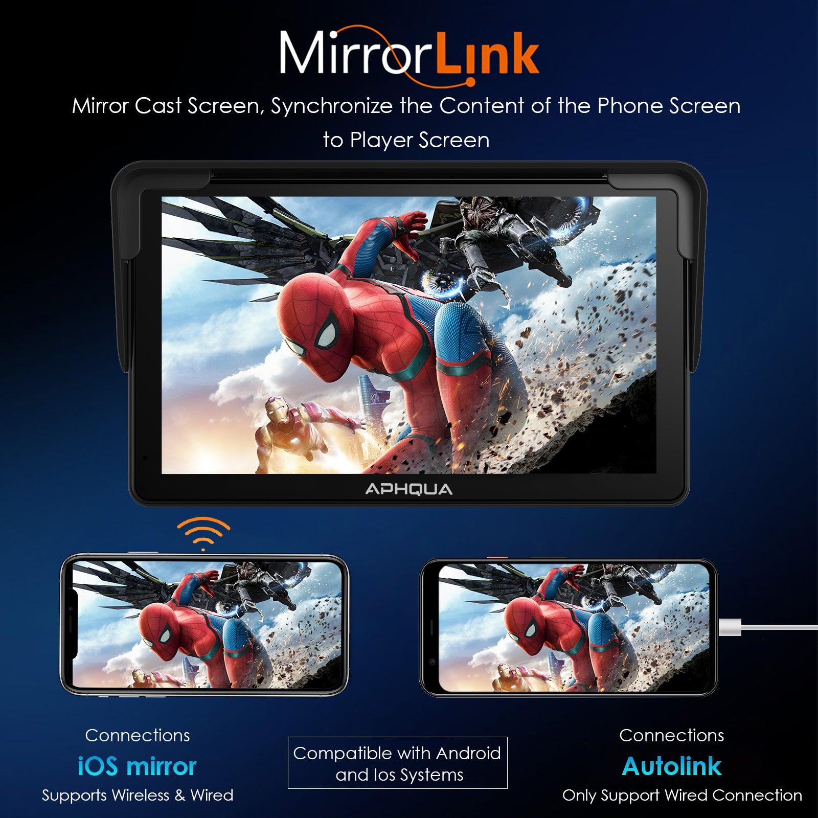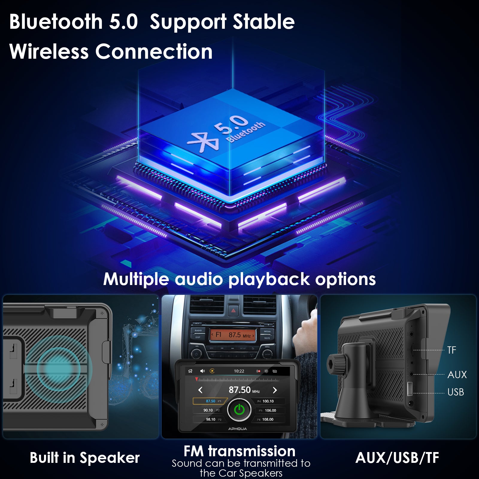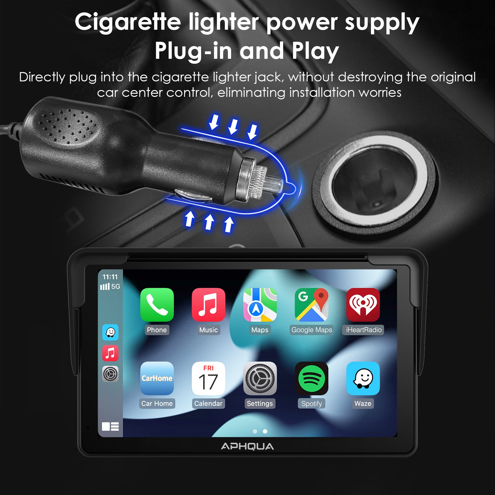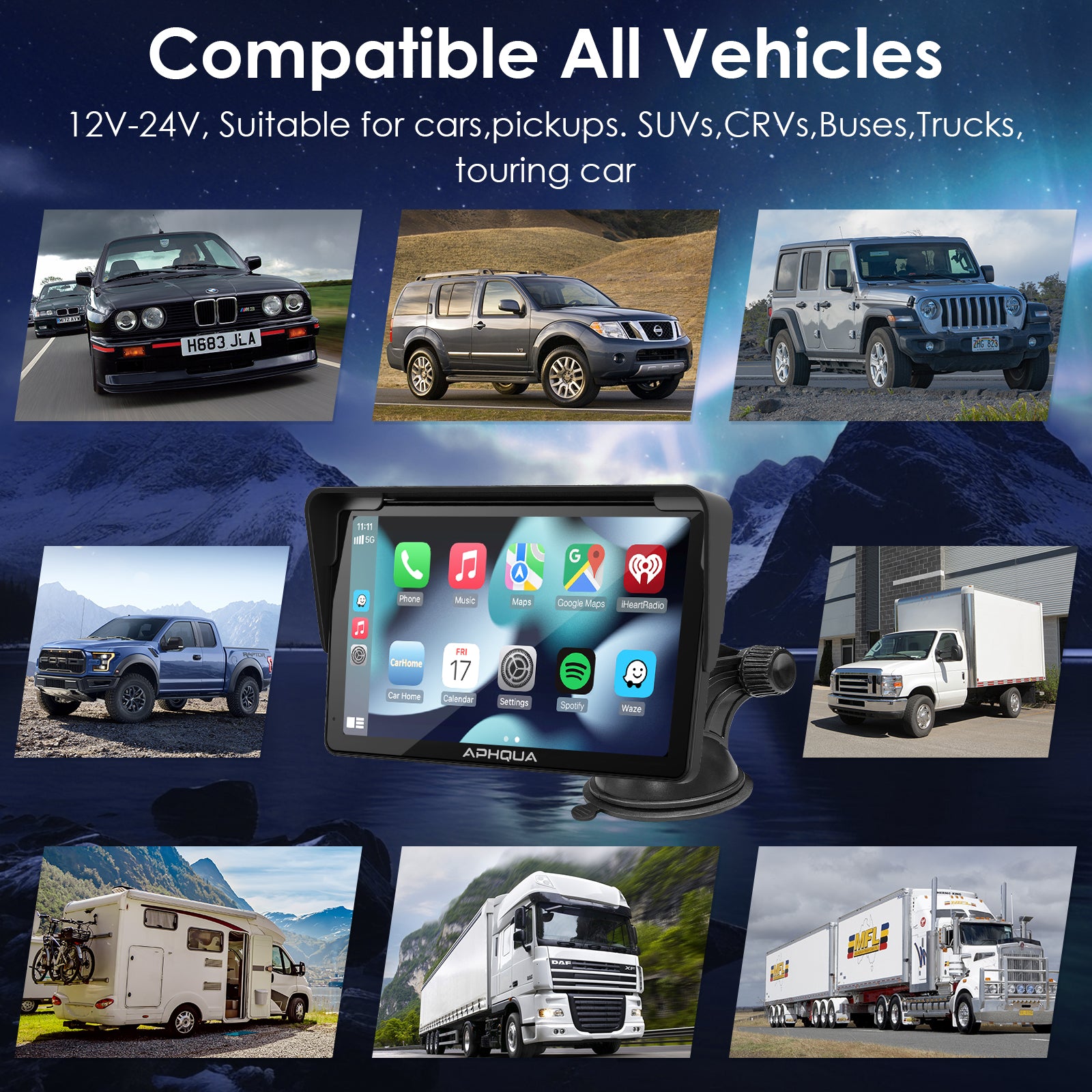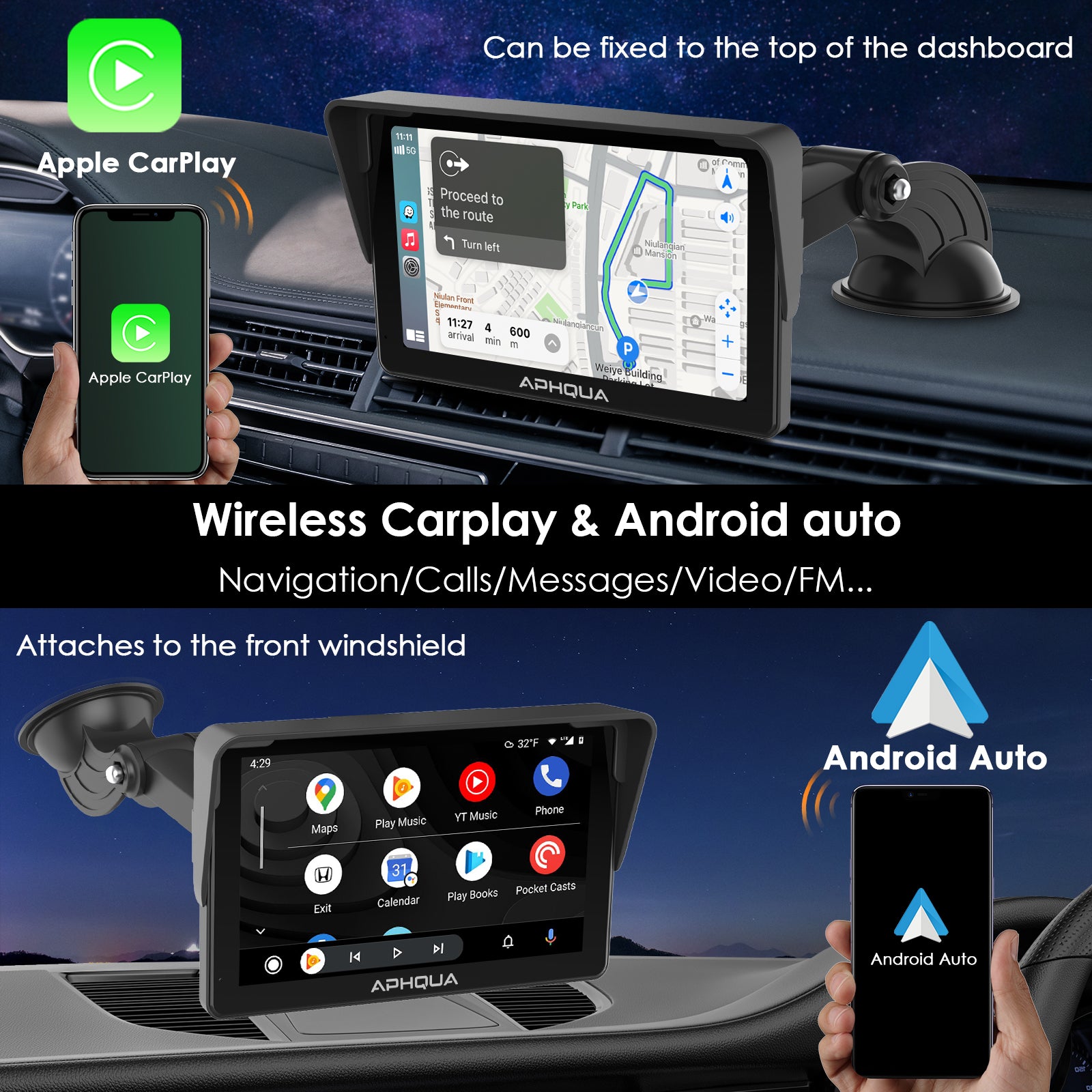 APHQUA A3 Portable Wireless Apple CarPlay and Android Auto with Detachable Sunshade, 7 inch Touch Screen Display for All Vehicle&Truck